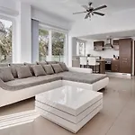 Villa Marni appartement|Villa Marni heeft een balkon en een zitruimte, voorzien van een flatscreen TV met satellietzenders en TV met meerdere kanalen, airconditioning voor een aangenamer verblijf. De accommodatie is ook ingericht met een bank. Er is een badkamer met een apart toilet en een douche, tevens zijn er een droger en handdoeken.